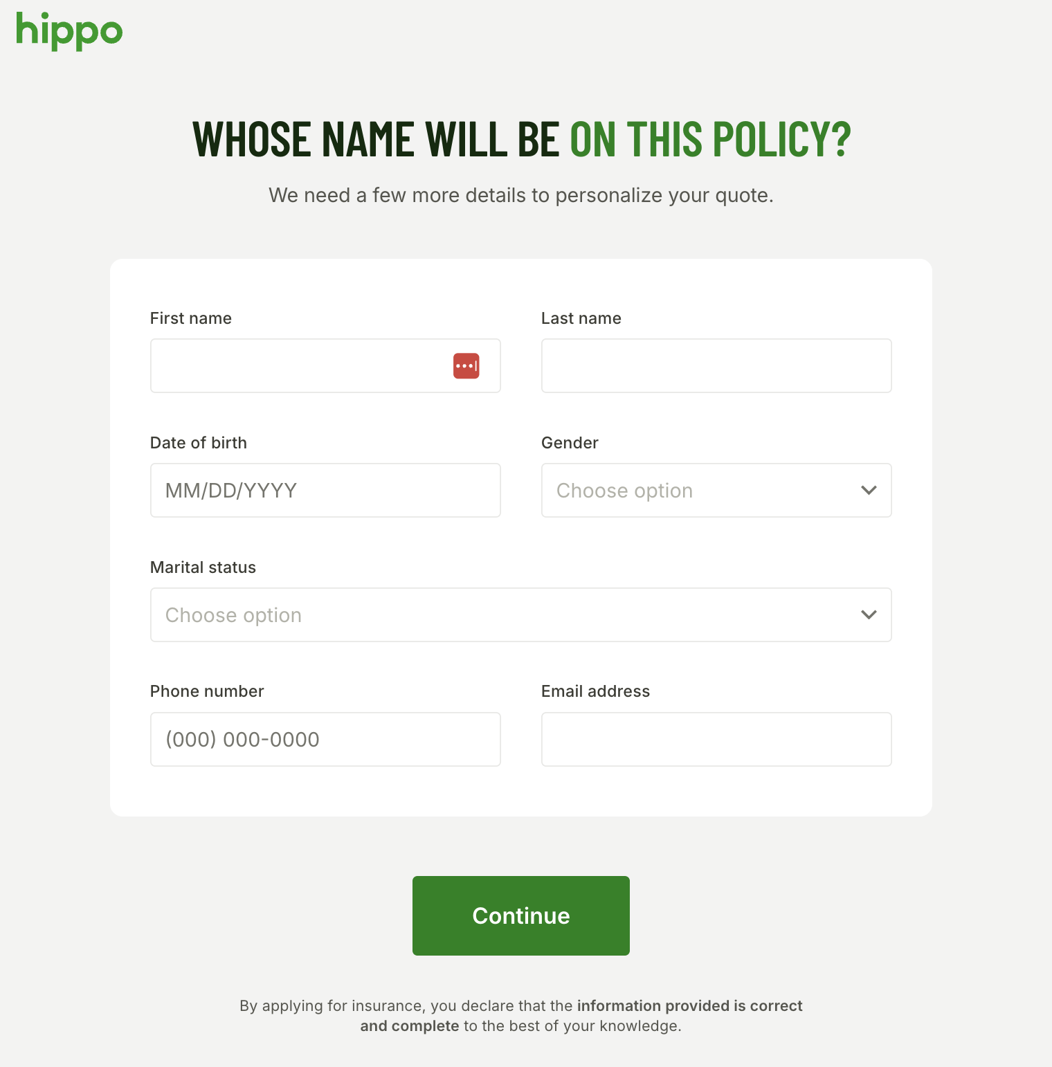 Hippo Insurance appears to offer fewer options than Compare.com, based on our testing. Hippo’s quoting process was shorter, with only three slides before quoting a policy.