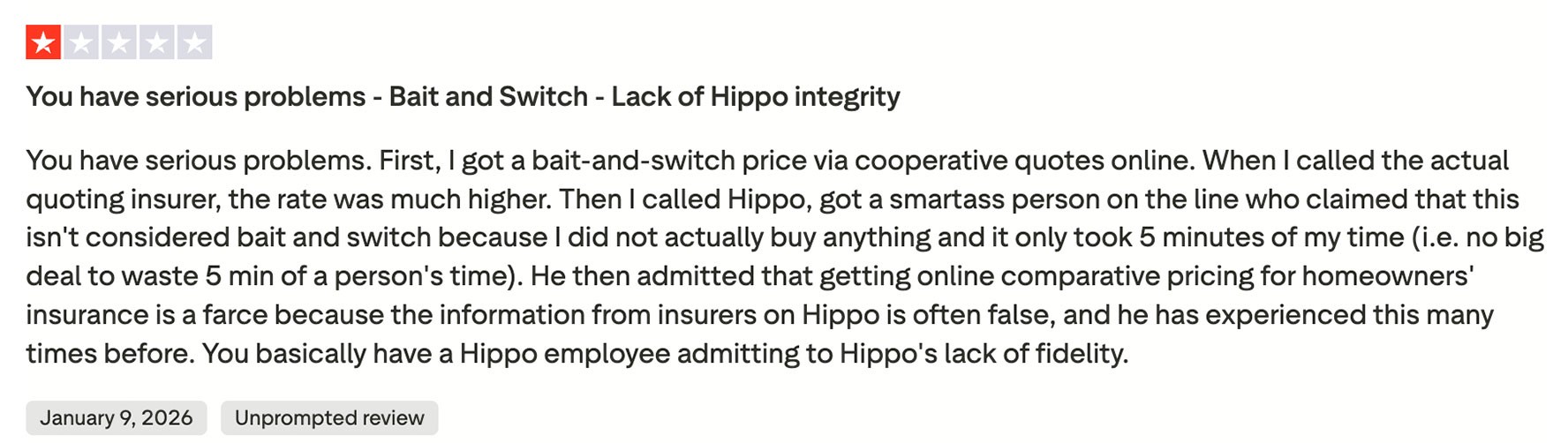 Customer reviews are somewhat limited, but those that exist mostly point to differences between the prices quoted by Hippo and the final prices offered by the partner insurers.